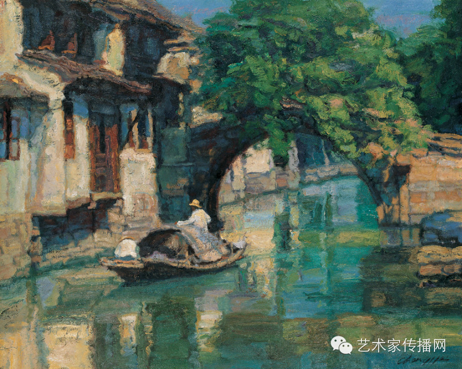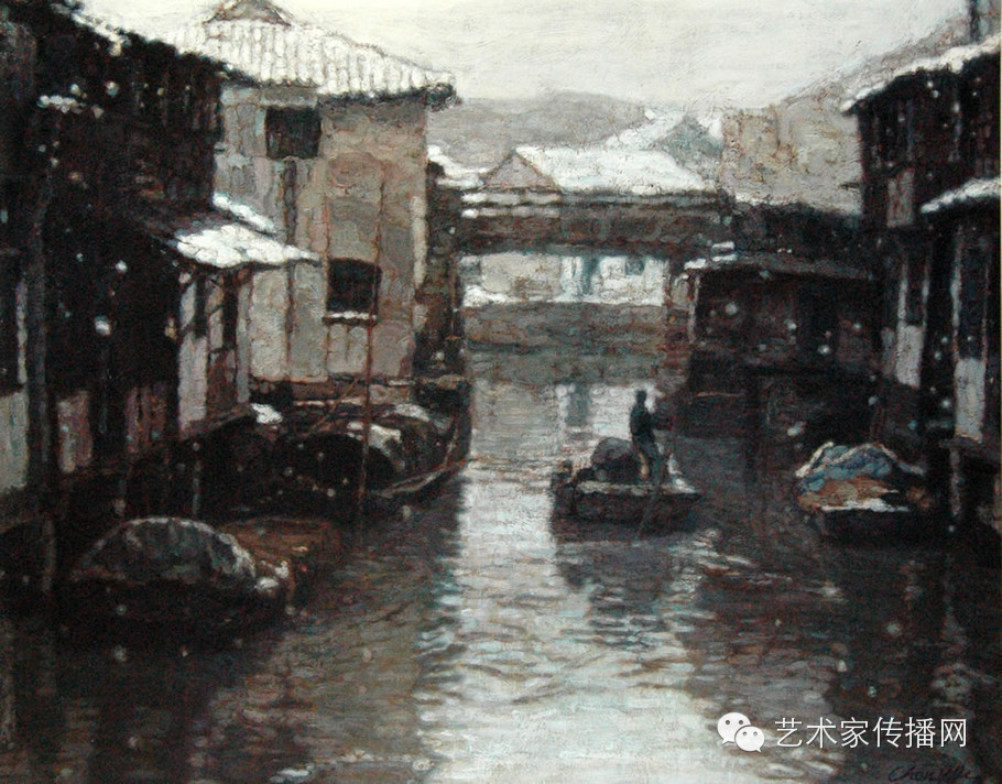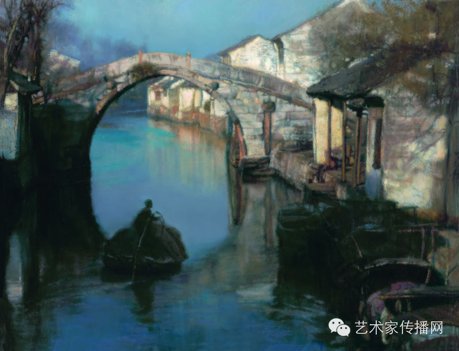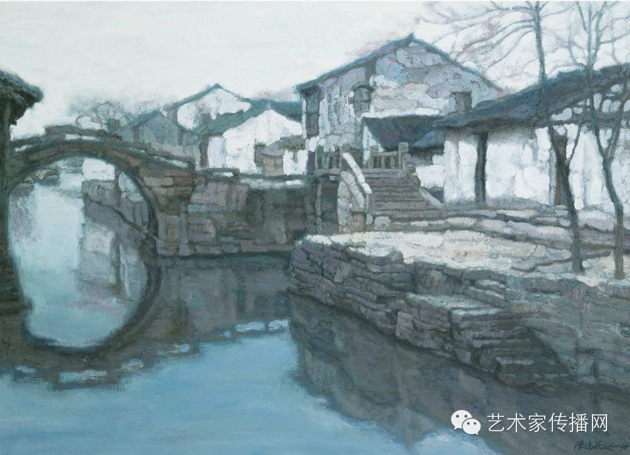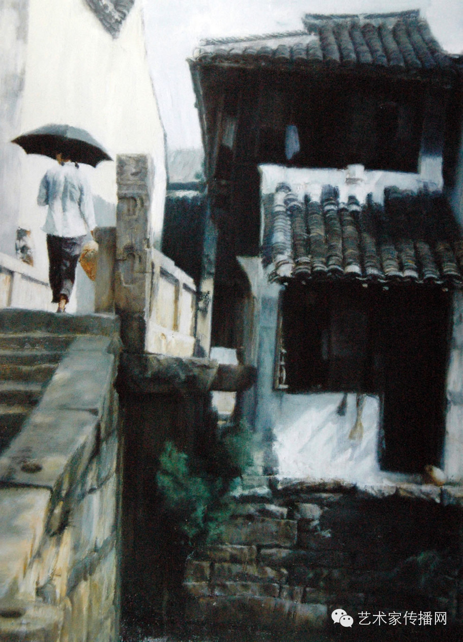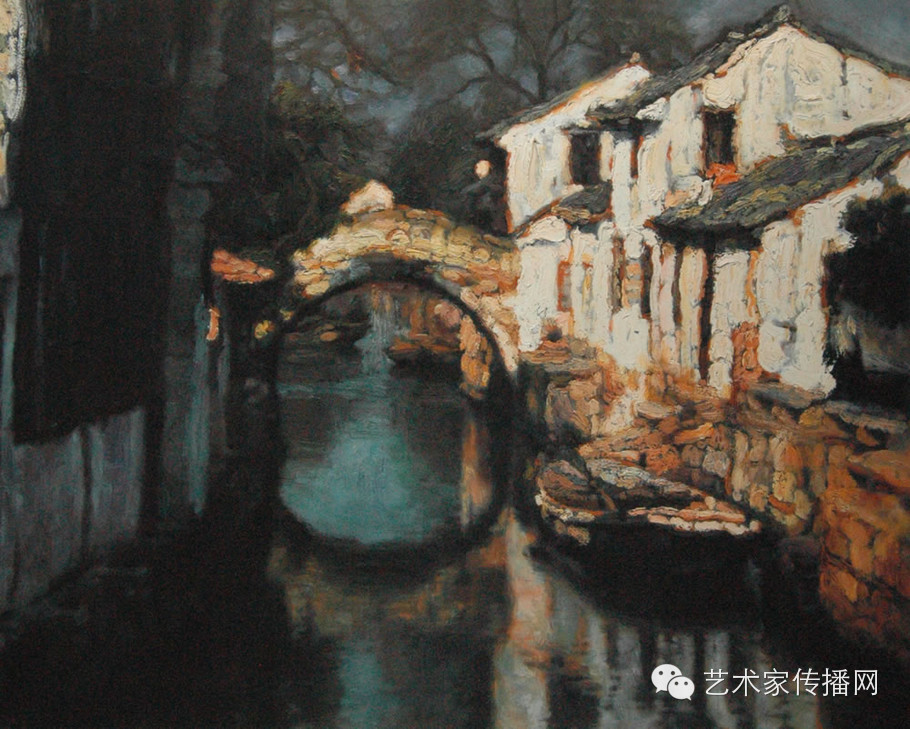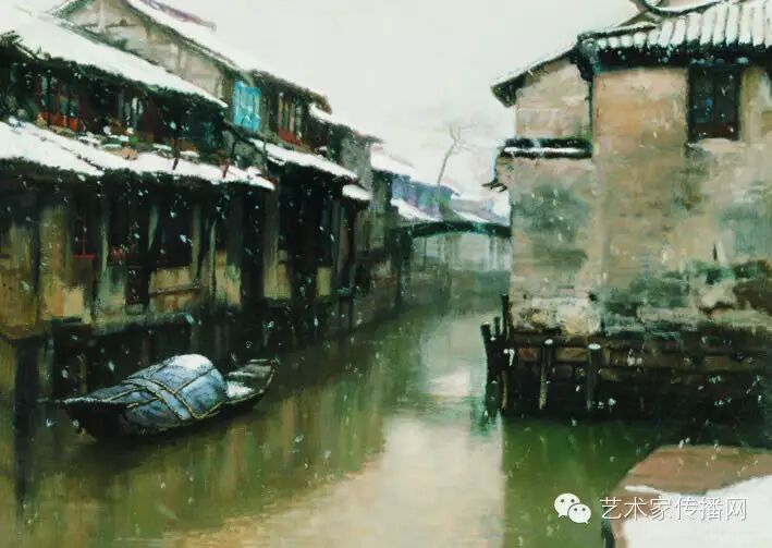建议他以照片上的水乡为素材创作油画。于是,黑白色的周庄在陈逸飞的笔下幻变成色彩斑斓的梦里水乡,周庄不仅让他的第一次画展取得了成功,更令他对从未谋面的周庄产生了一种扑朔迷离的亲切感。