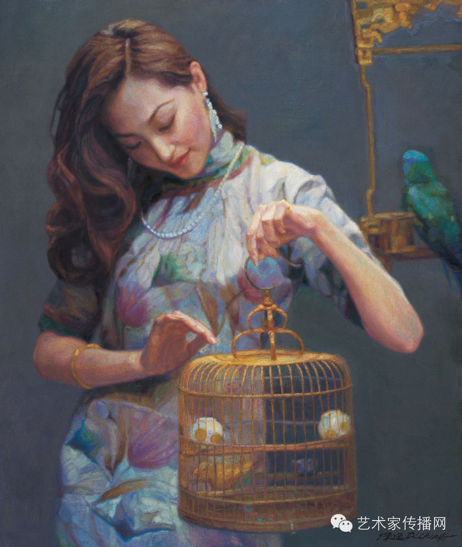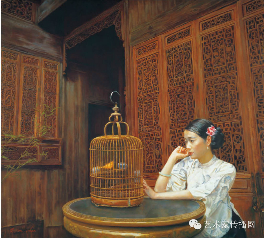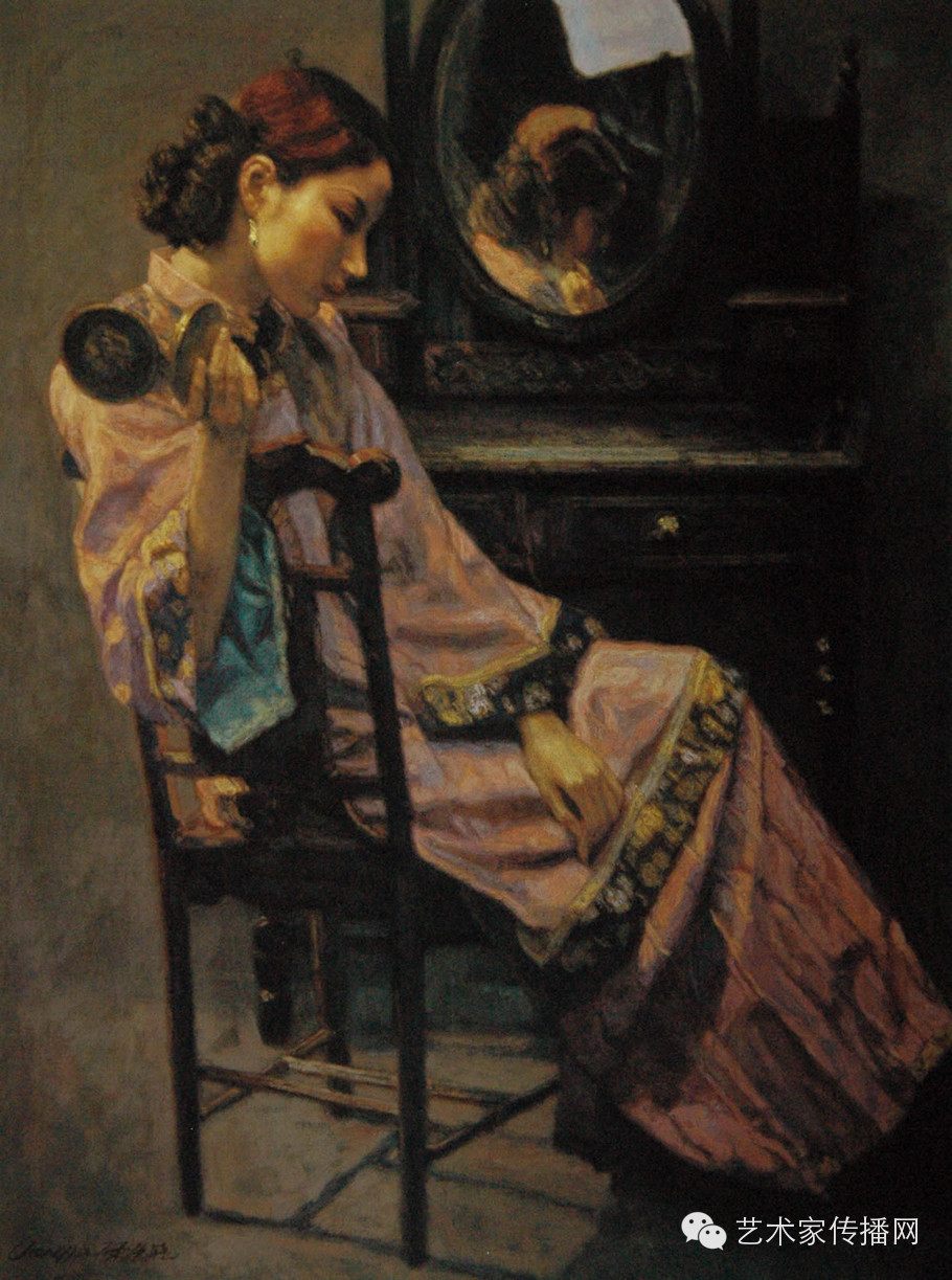 而在这自视和外观的过程中,必然融入他们流淌在血脉之中的民族文化精神的基因,并且又在这深厚的文化底蕴中以个性力量寻求突破、超越和转换,从而建构起属于自己的绘画语言和图式,创作出凸显艺术家理想情怀和审美情致的作品,让人们不由自主地感受到从画面上涌现出的精神力量。从这个意义来说,陈逸飞是一位名副其实的、在艺术上卓有建树的既成熟又成功的油画家。