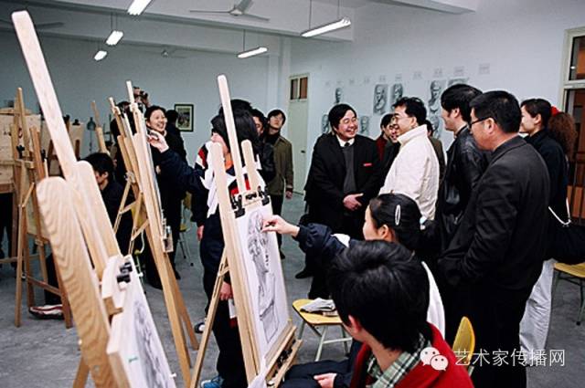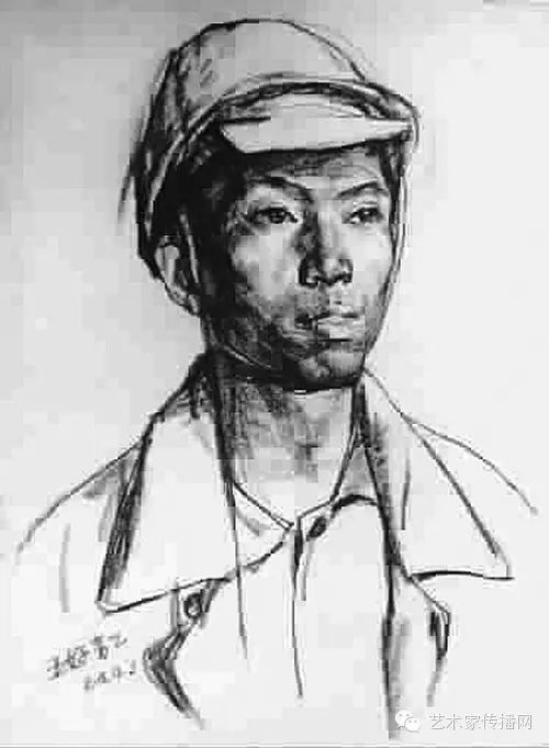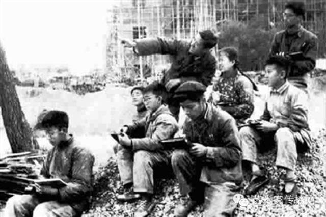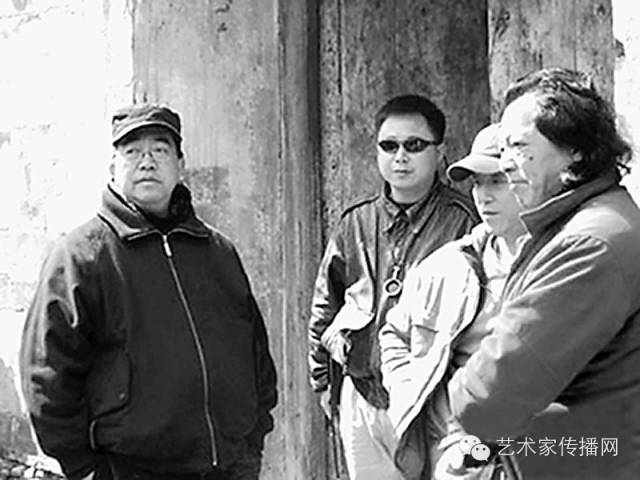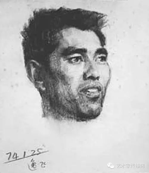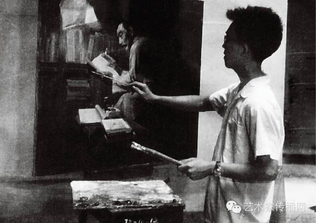 在上海美专老师哈定先生带领下与同学一起写生(中间戴眼镜者为陈逸飞)