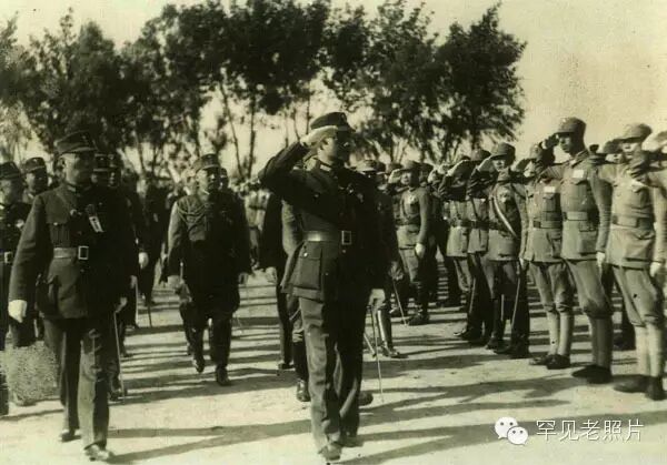 汪精卫和军政部长鲍文樾的陪同下检阅部队。