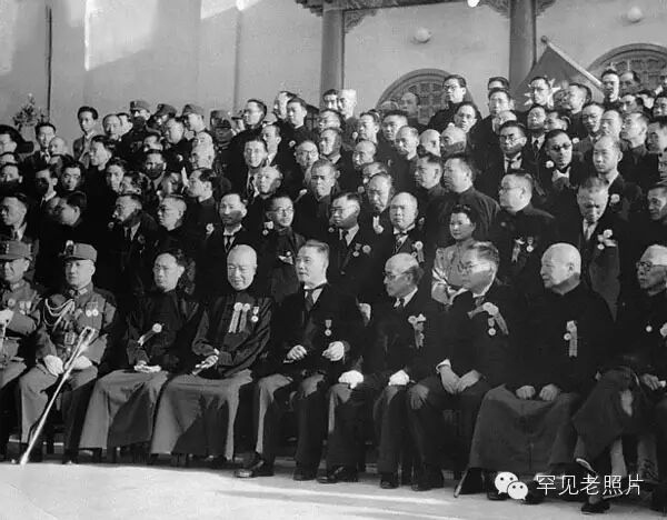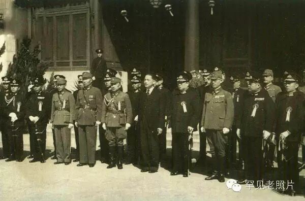 汪伪政府成立时汪精卫与陆海军高级将领合影。