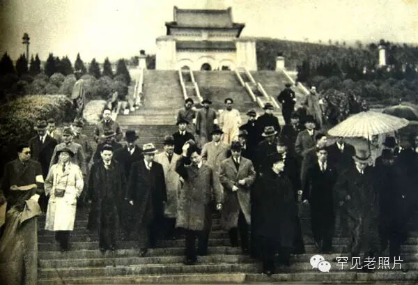 汪伪政权首脑拜祭中山陵影像。