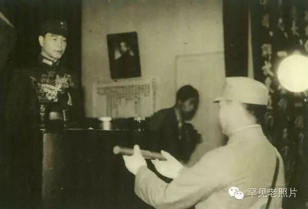 汪精卫向军官颁授配剑。