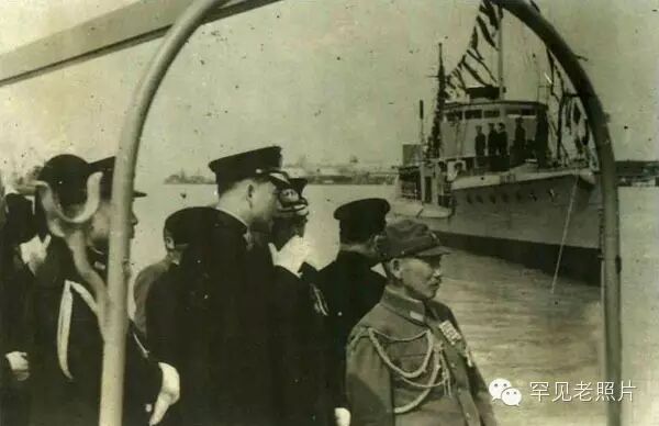 1940年,汪精卫参加日军交接军舰仪式。