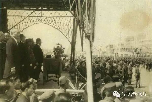 汪伪政府主要官员都参加了中央军官训练团开学典礼阅兵仪式。