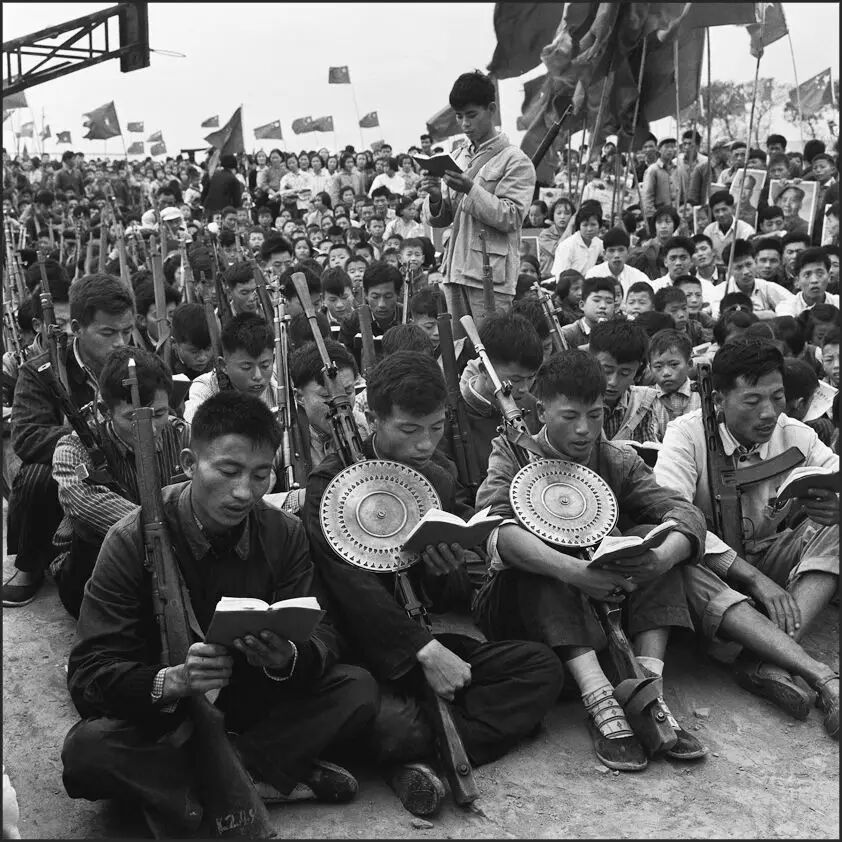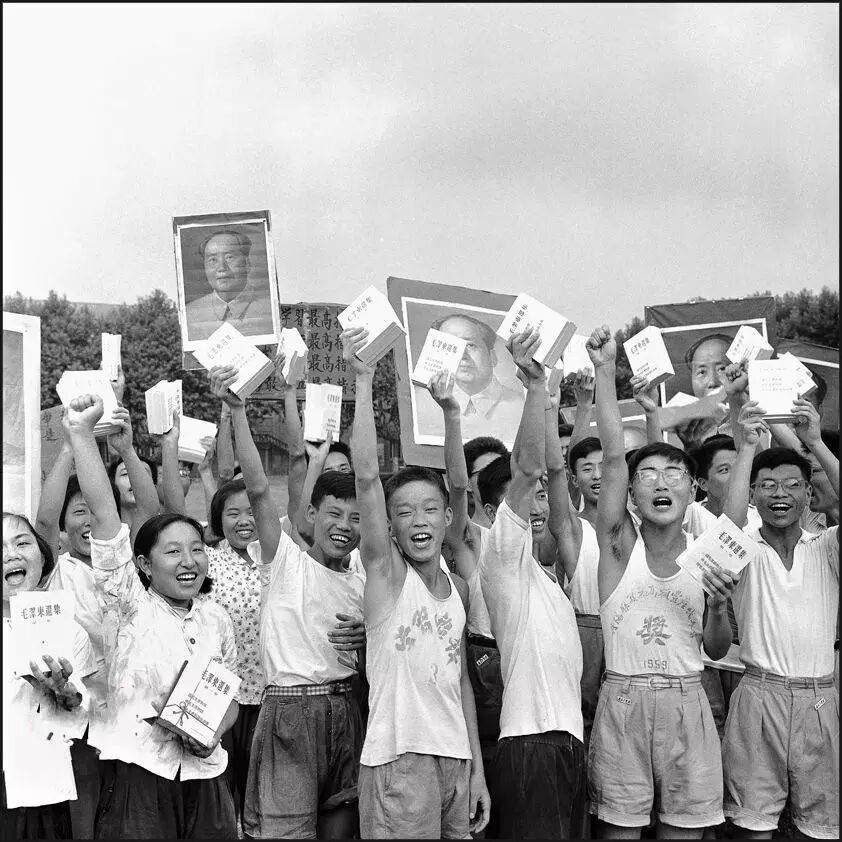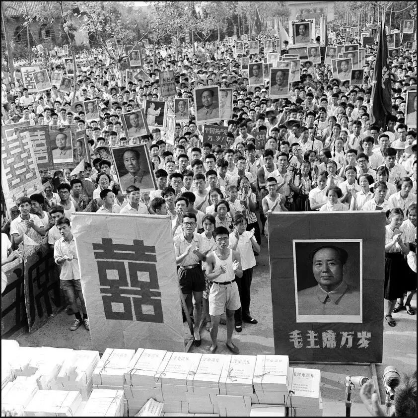 1966年,南京工学院师生领到红宝书后, 高呼毛主席万岁。晓庄/摄。