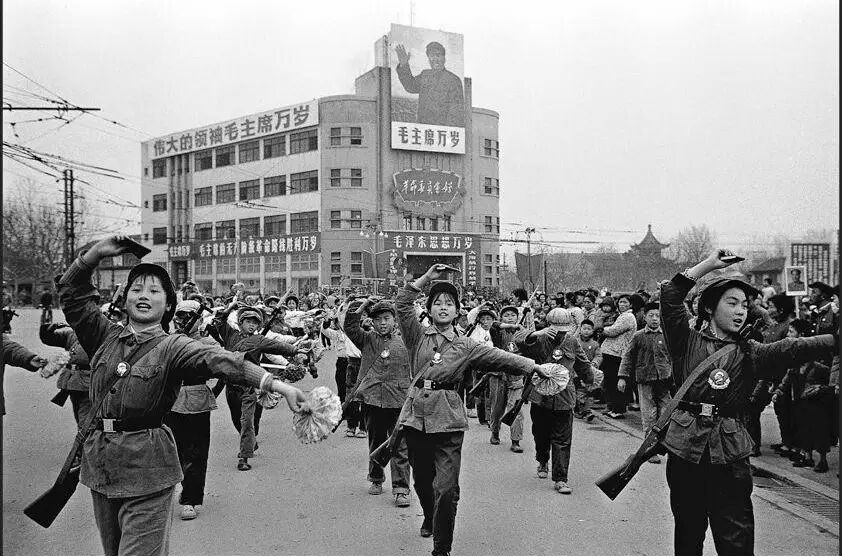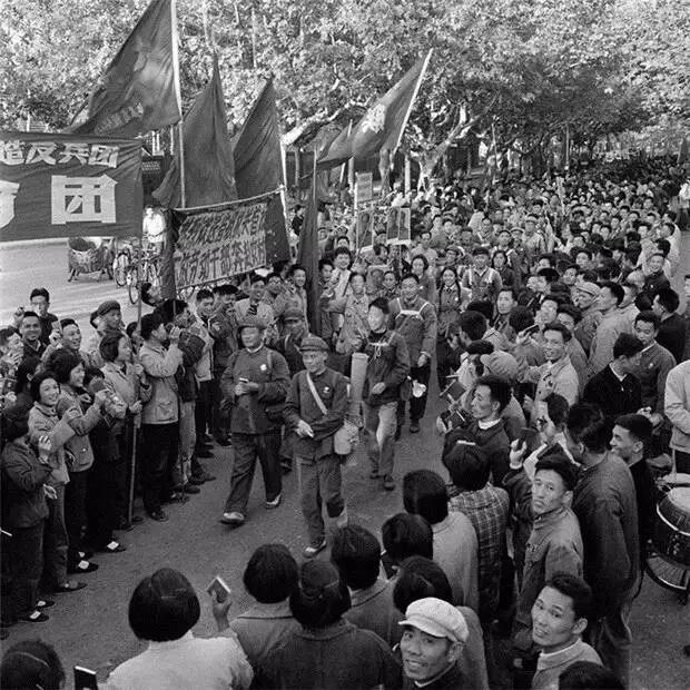 1966年,南京大专院校红卫兵走上街头,庆祝我国首次核导弹试验成功。晓庄/摄。