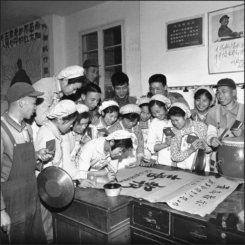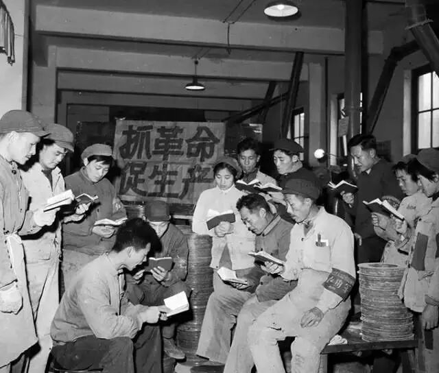 纺织厂出个喜报,也要手拿红宝书。照片拍摄于文革期间,晓庄/摄。