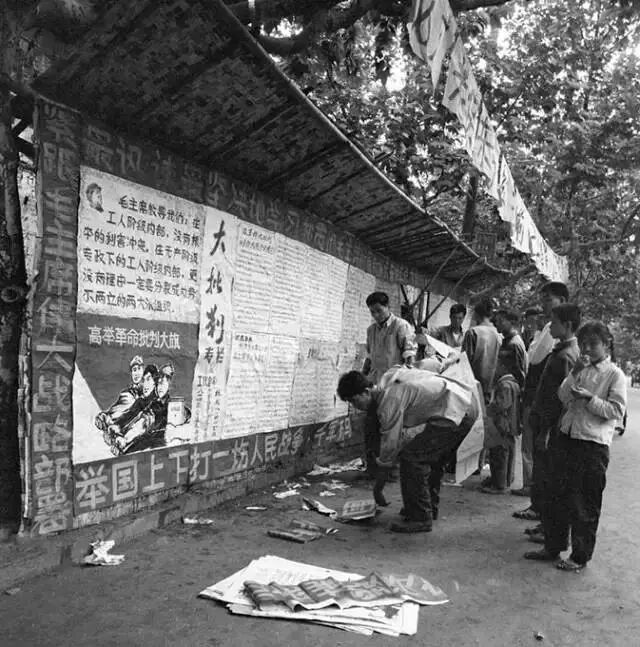 1966年,南京红卫兵走上大街,贴大字报。晓庄/摄。