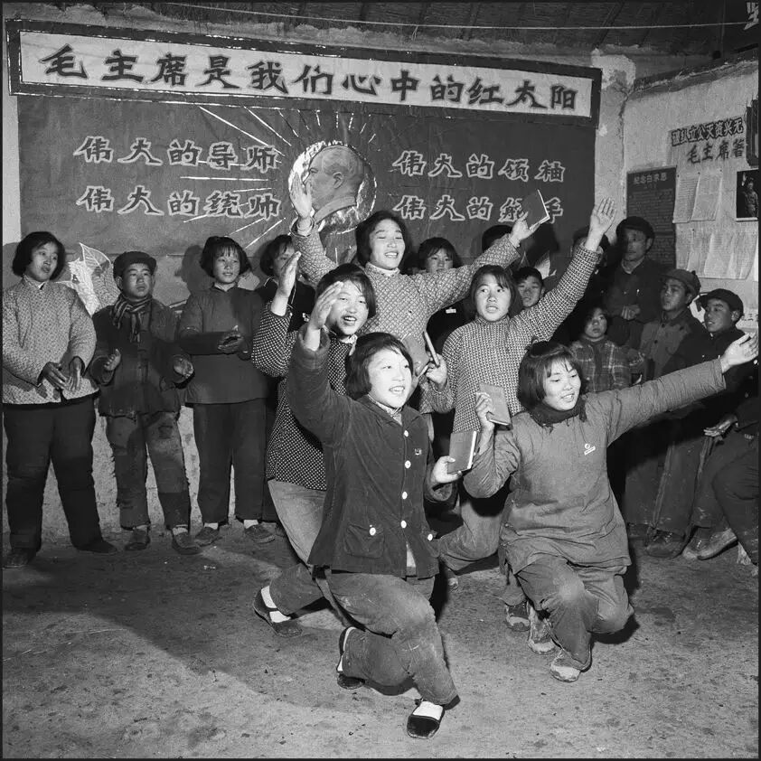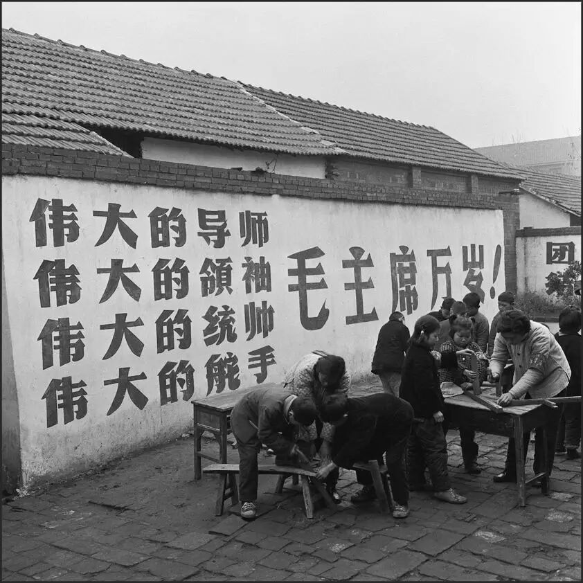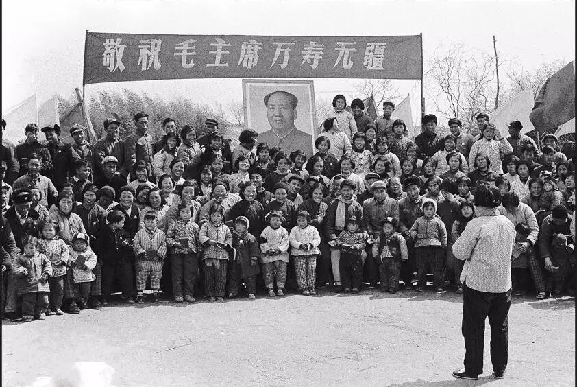 儿童妇女等一起祝毛泽东万寿无疆。照片拍摄于文革期间,晓庄/摄。