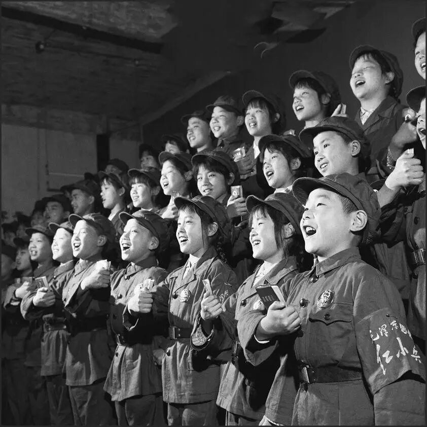 1966年,南京市红小兵合唱队高唱毛主席语录歌。晓庄/摄。