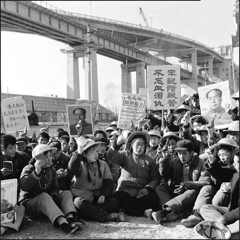 1968年,参加南京长江大桥建设的工人在大桥下举行忆苦会,以“牢记阶级苦,不忘血泪仇”的革命精神鼓励大家参加大桥建设。晓庄/摄。