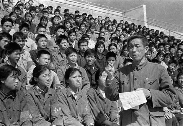 1969年,南京市五台山体育场召开的下放大会,红卫兵腰鼓队为下放人员送行。晓庄/摄。