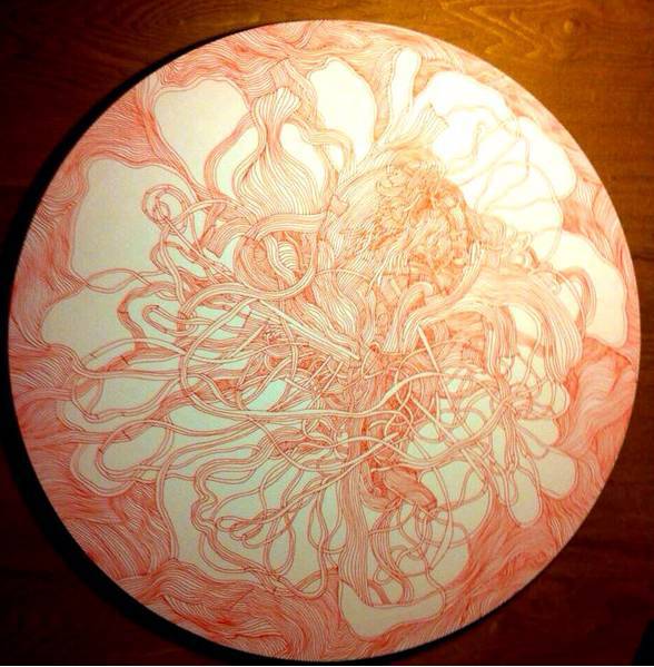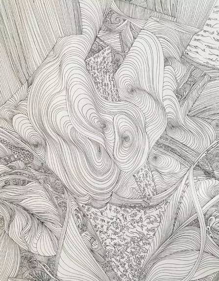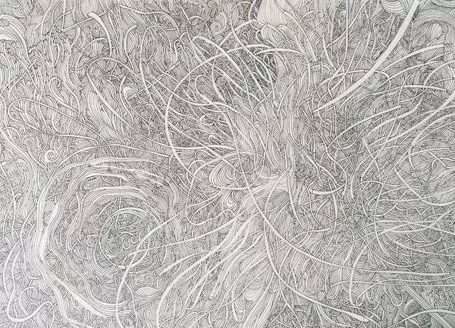 没有任何专业基础,也没有什么参照物,她就是随着自己的心意,让情绪在线条间肆意挥洒。
