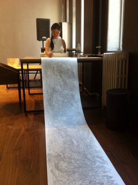 越努力越幸运。机缘巧合下她认识了央美的袁运生老师。袁运生教授在看了她的长卷画作后不由地赞叹道:“ 很独特,我没见过这样的学生,她很有才华,而且这种才华不是靠专业训练出来的。”