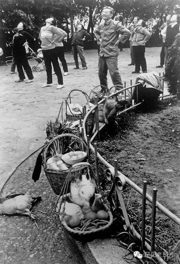 1989年,买菜、健身两不误。菜篮子里都是鸡呀,蛋呀,肉呀,生活水平大大提高。
