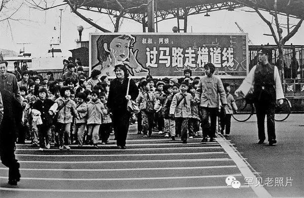 1982年,小学生过马路。30年过去了,国人照样闯红灯,横穿马路,素质究竟改变了多少?