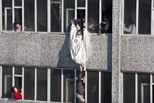 2012年,《中国日报》摄影记者李杨的作品《拯救跳楼新娘》获得突发新闻单幅三等奖。