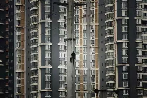 2012年,《成都商报》摄影记者许少锋的作品《工人爬上高压电线杆》获得当代热点类单幅优秀奖。