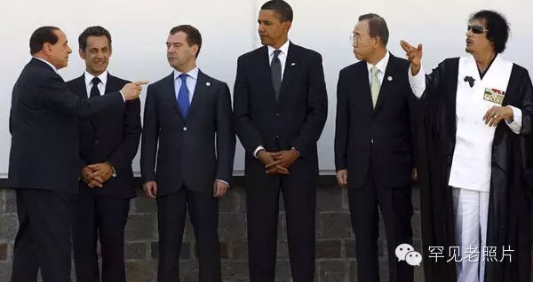 图为2009年7月10日,卡扎菲参加意大利G8峰会。