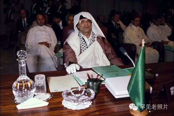 1988年,在阿尔及利亚举行的阿盟首脑会议上,卡扎菲右手戴了一只白手套,说是为了与“美国走狗”握手时不至于脏了自己的手。