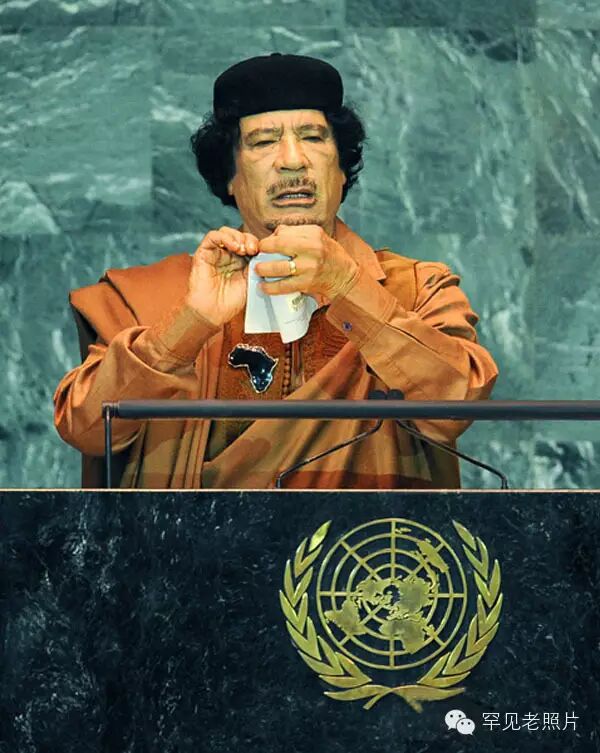 2009年9月23日,卡扎菲首次在联合国亮相,也是他在联合国的处女秀,演讲长达100分钟。