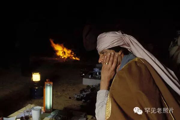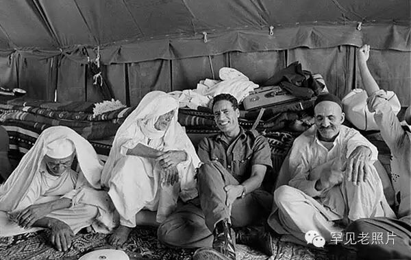 图为1973年,成功后的卡扎菲在父亲的帐篷内笑得非常开心。
