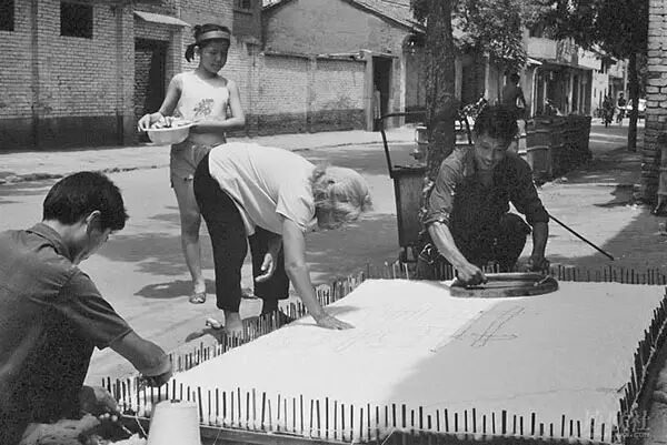 1988年,西安盐店街,在街上弹棉花为儿子准备结婚的老人。