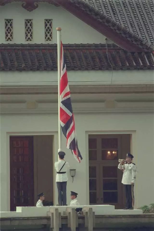 军号声响遍港督府,英国国旗同时徐徐降下。