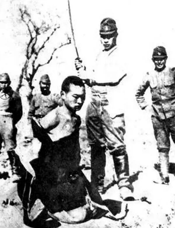 1937年12月,江苏南京大屠杀,侵华日军砍杀南京青年,称为“试斩”。
