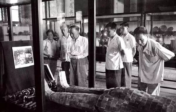 1971年,出土文物展在故宫举办,引起了社会的广泛关注。图为郭沫若(左三)等观看金缕玉衣。翁乃强/摄。