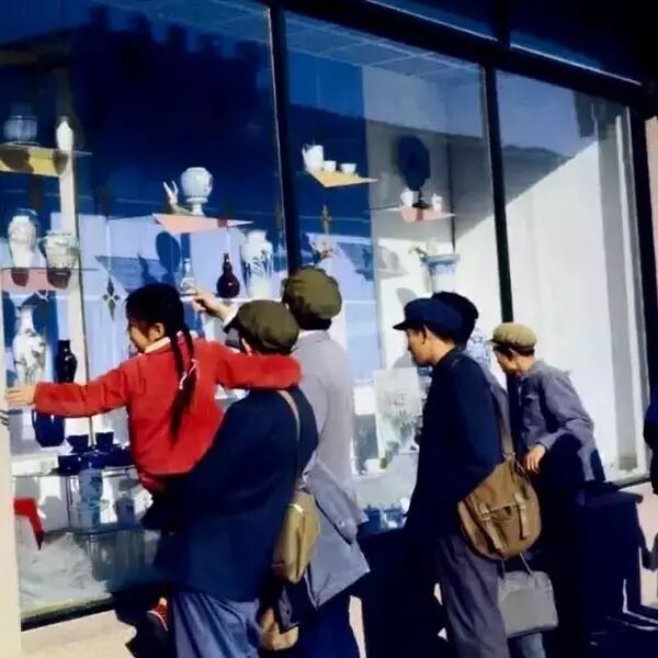 1970年代初,王府井工艺美术商店的瓷器展,吸引了市民的围观。翁乃强/摄。