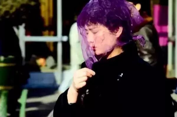 1980年代,北京,一位女士系着纱巾防沙尘暴。翁乃强/摄。