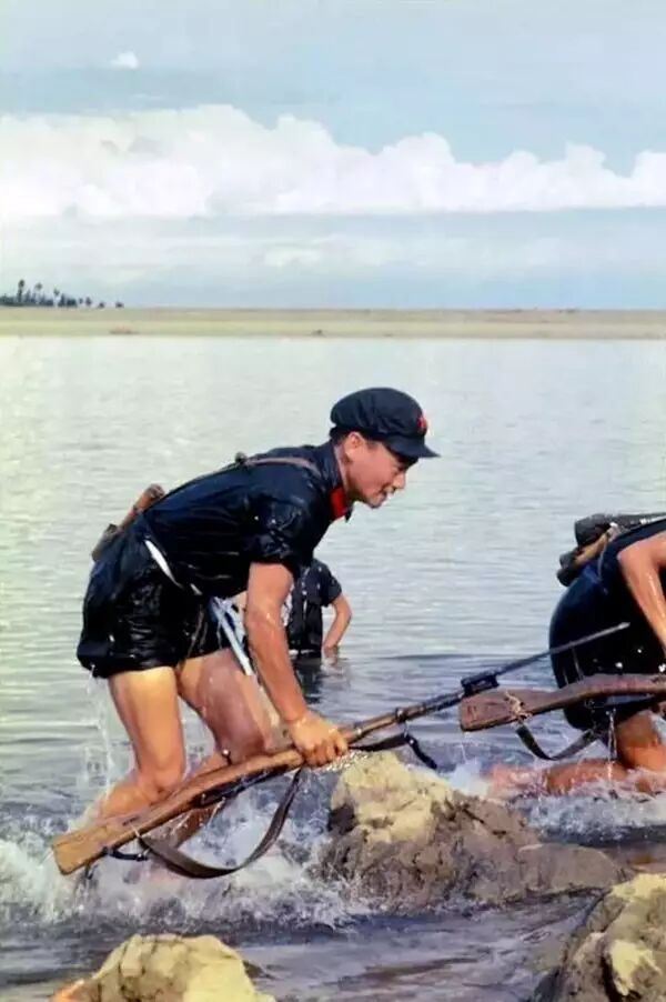 1960年代后期,解放军在北京郊区的一座水库进行武装泅渡训练。翁乃强/摄。