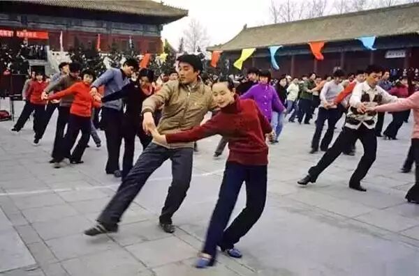 1980年代初,北京劳动人民文化宫跳集体舞的年轻人。翁乃强/摄。