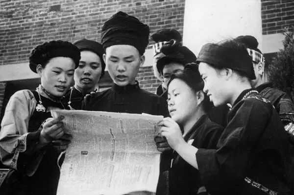 1954年,贵州民族学院,苗族学生们正在阅读中华人民共和国宪法草案。