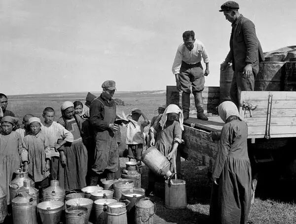 1955年,内蒙古海拉尔牛奶厂到牧区收购牛奶。庄学本/摄。
