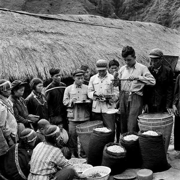 1959年,云南省,独龙族村民售卖采集的山货。王耀知/摄。