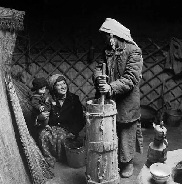 1957年,新疆,一位阿妈正在做酥油。苏俊慧/摄。