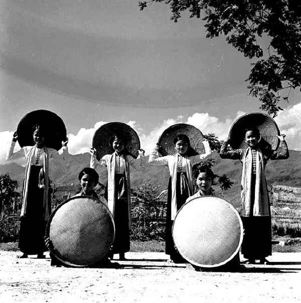 1957年,云南省,傣族姑娘跳起草帽舞。王耀知/摄。