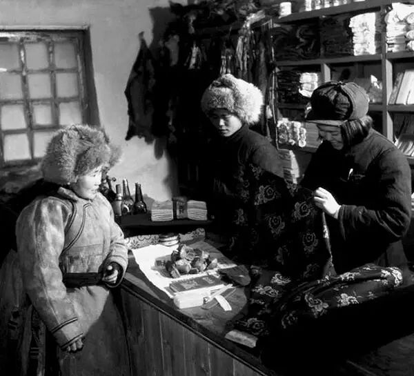 1953年,黑龙江省,鄂伦春族女猎人在合作社里选购商品。正威/摄。