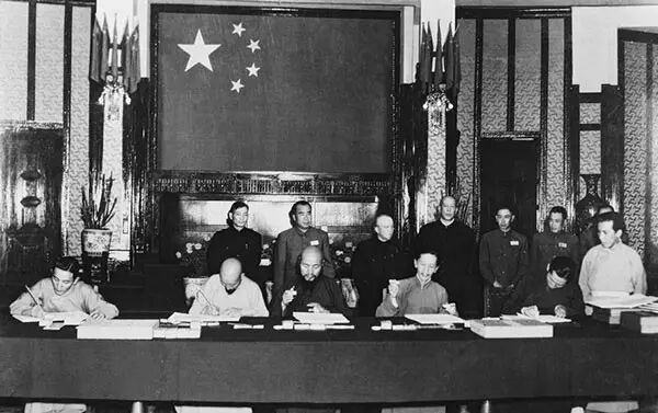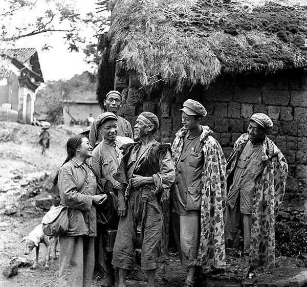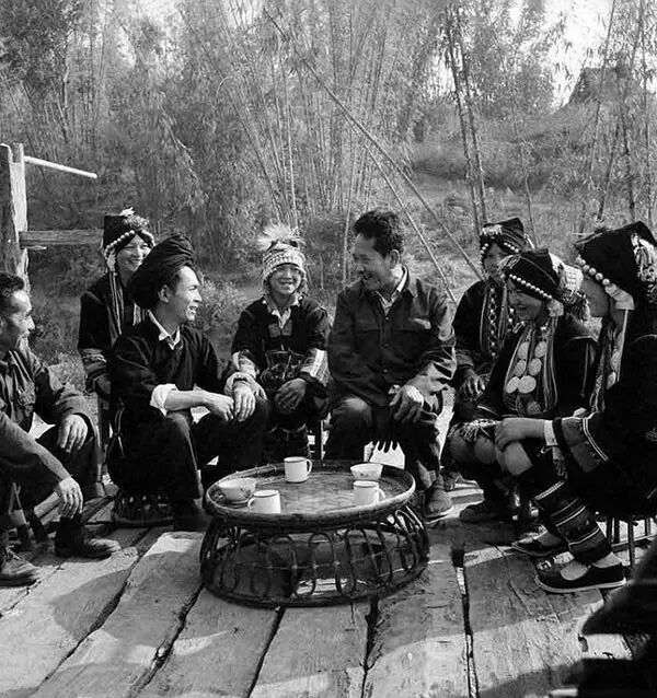 1950年9月,云南省路南县,中央西南民族访问团第二分团在访问期间分成小组慰问群众,其中一个小组来到撒尼族群众的家中慰问。钱嗣杰/摄。