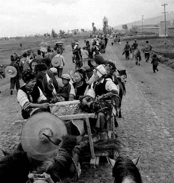 1961年,云南省大理市喜洲人民公社社员去赶“三月街”。许信尧/摄。