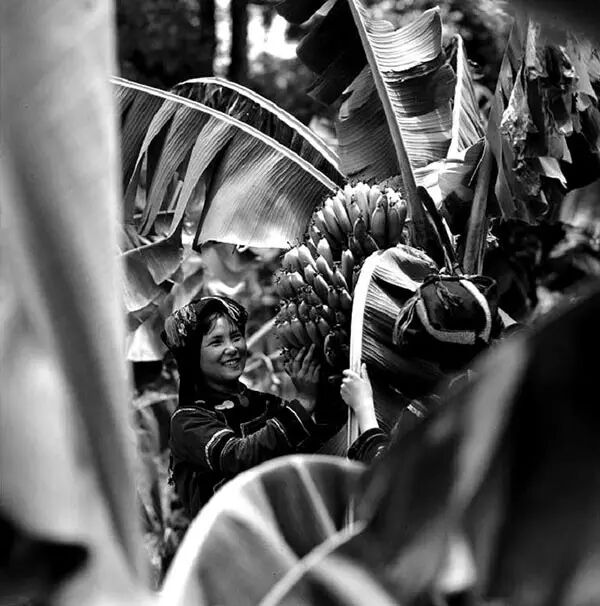 1980年,云南省,哈尼族社员喜收香蕉。车文龙/摄。