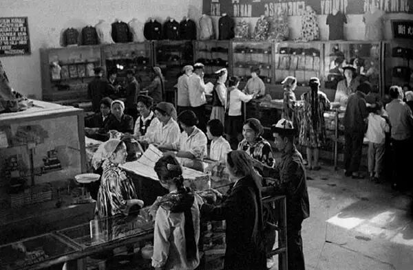 1978年,新疆阿图什百货商场内顾客购物场景。朱合安、赵作慈/摄。