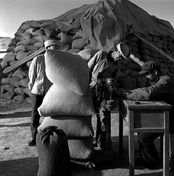 1964年,青海省互助土族自治县的社员踊跃交公粮。扎西尼玛/摄。