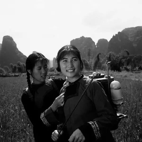 1980年,广西省,喷洒农药的仫佬族姑娘。