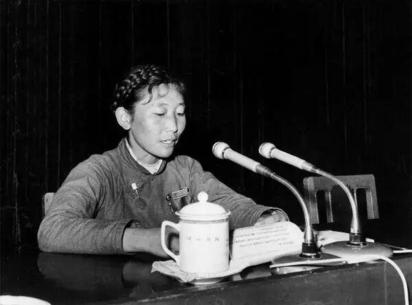 1966年,北京,西藏自治区朗县副县长翻身农奴巴桑在学习毛主席著作讲用会上作报告。
