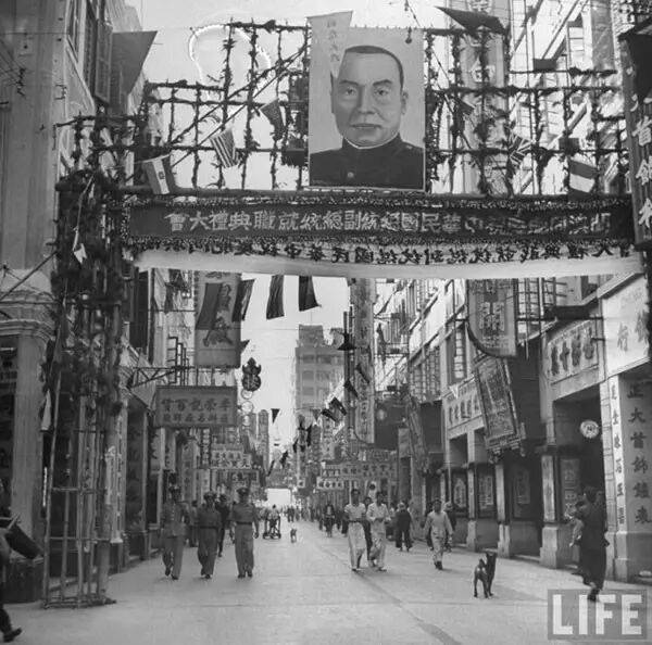 1948年6月,澳门,李宗仁头像在主要街道的中心。