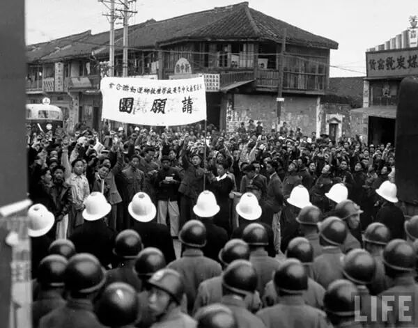 1948年6月,上海,上海交通大学的学生反美示威,警方出兵试图控制局势。